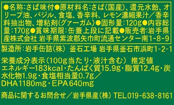 ・国産サバのレモンバジル味 170g×8個(賞味期限:2025/12/02)