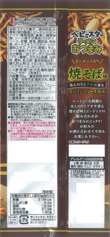 [60袋]おやつカンパニー ベビースターラーメン おつまみ焼そば味スパイシーソース風味 58g | ピリ辛のベビースターとピーナッツの相性抜群