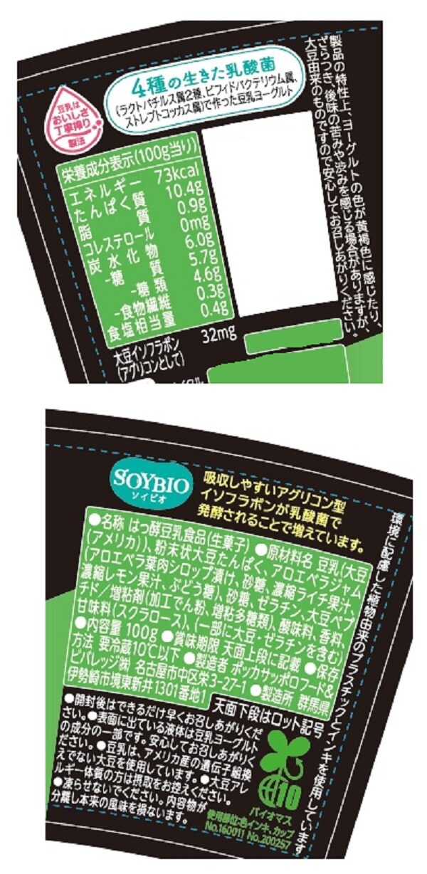 - SOYBIO 豆乳ヨーグルト ソイプロテイン プレーン 加糖 100gカップ / アロエ 100gカップ