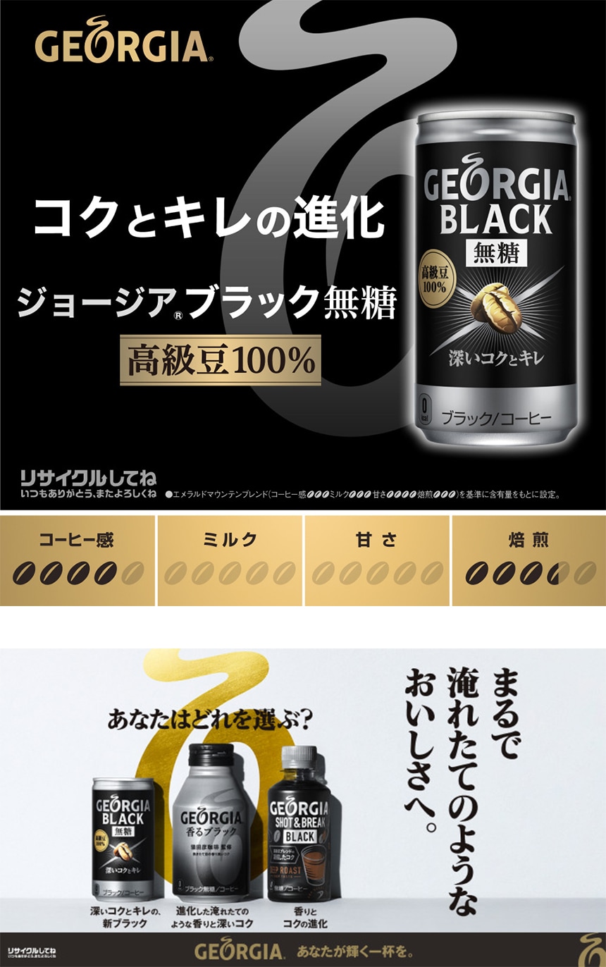 仕事・勉強・家事の合間の休憩中はもちろんのこと、眠気覚ましやオン・オフの切り替えにぴったりな『ジョージア ブラック』をぜひお試しください。