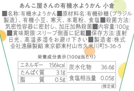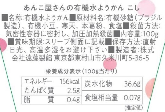 【あんこ屋さんの有機水ようかんこし】
