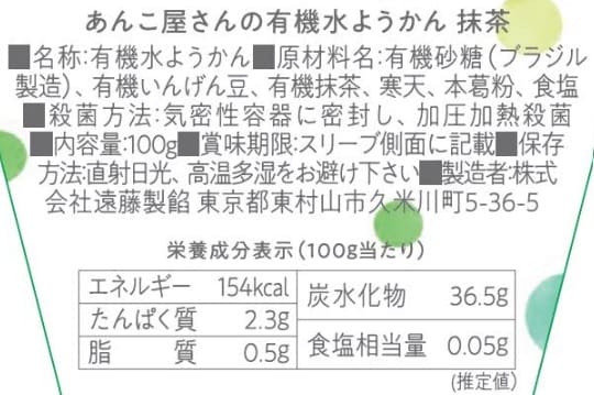 [3種計36個]遠藤製餡 あんこ屋さんの有機水ようかん3種(こし/抹茶/小倉) 各100g | 有機JAS認証の水ようかん!