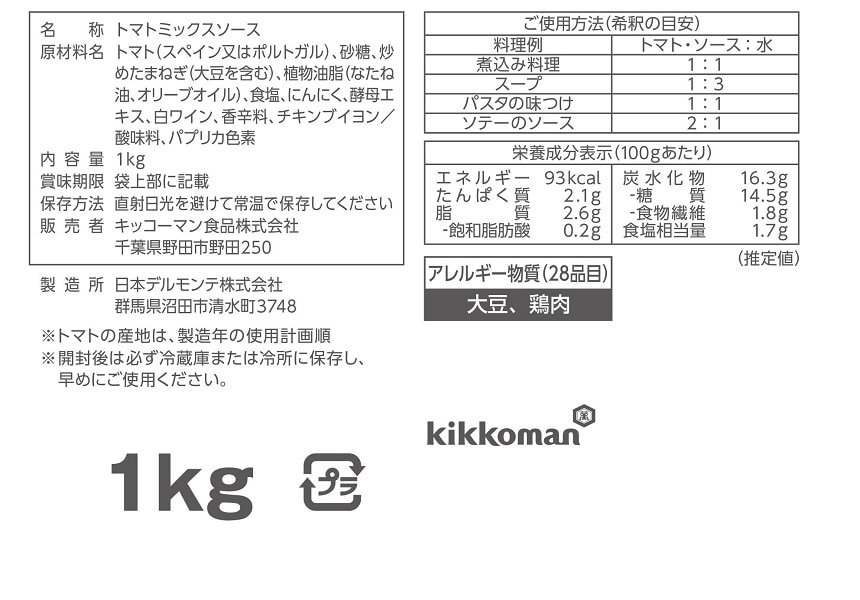 - デルモンテ トマト・ソース濃厚タイプ 1kg