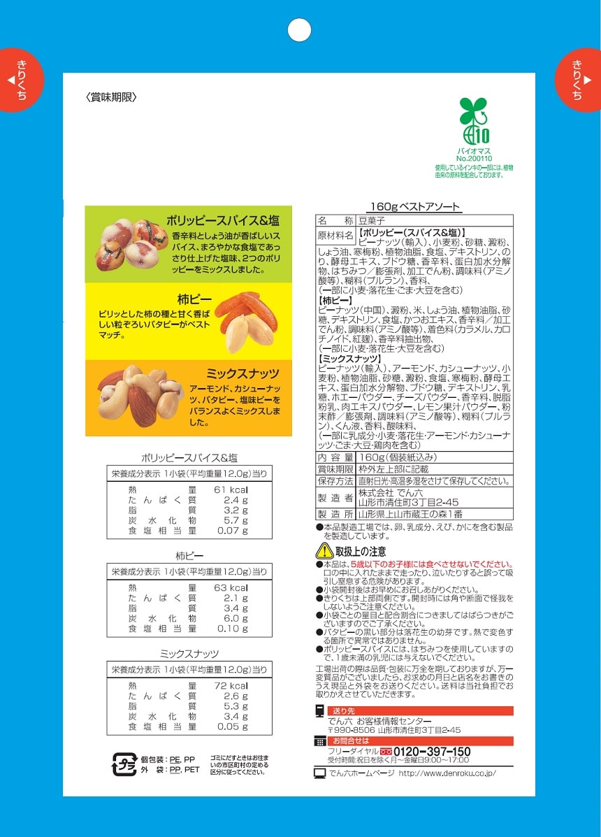 人気のおつまみ3品・柿ピーナッツ・ミックスナッツ・ポリッピー(スパイス&塩)を詰め合わせました。それぞれ食べ切りサイズの包装です。