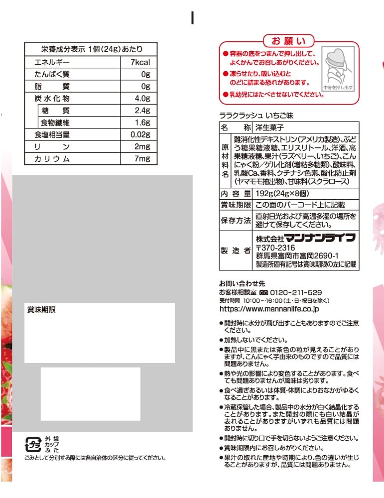 ・ララクラッシュ いちご味 192g(24g×8個)×12袋 (賞味期限:2023/01/02) - 賞味期限