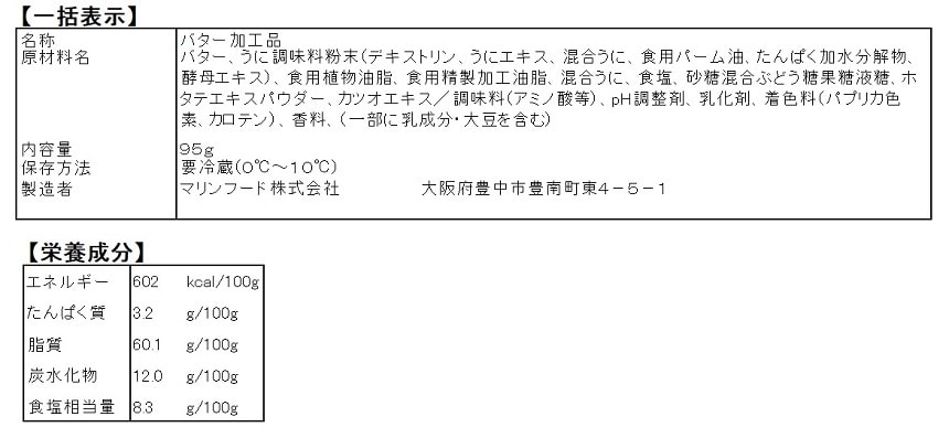 [12個]マリンフード うにバター 95g | コクのあるバターとうにの旨味が調和した混ぜバター