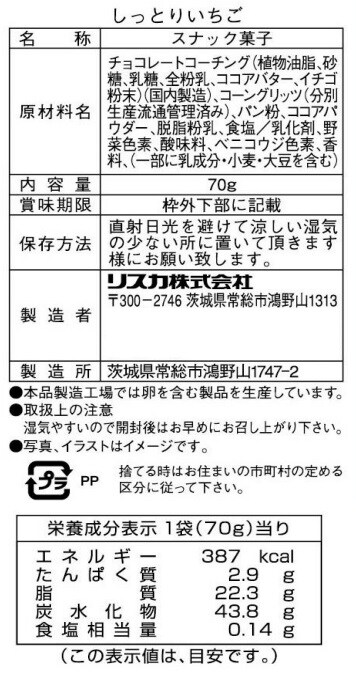 [90個]リスカ しっとりいちご 70g | いちご味は甘さだけではなく酸味も感じられてサクサクとした食感のスナックです!