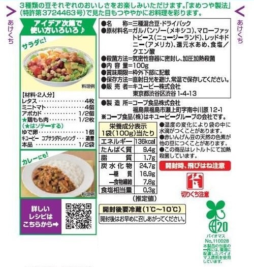 [24個]キユーピー サラダクラブ ミックスビーンズ ひよこ豆/青えんどう/赤いんげん豆 100g | サラダやお料理にそのまま使えます。 たっぷり100g入り!