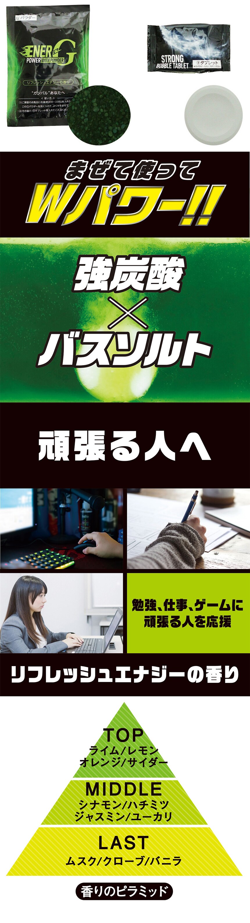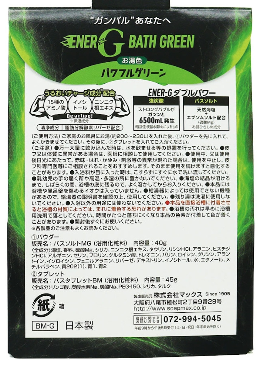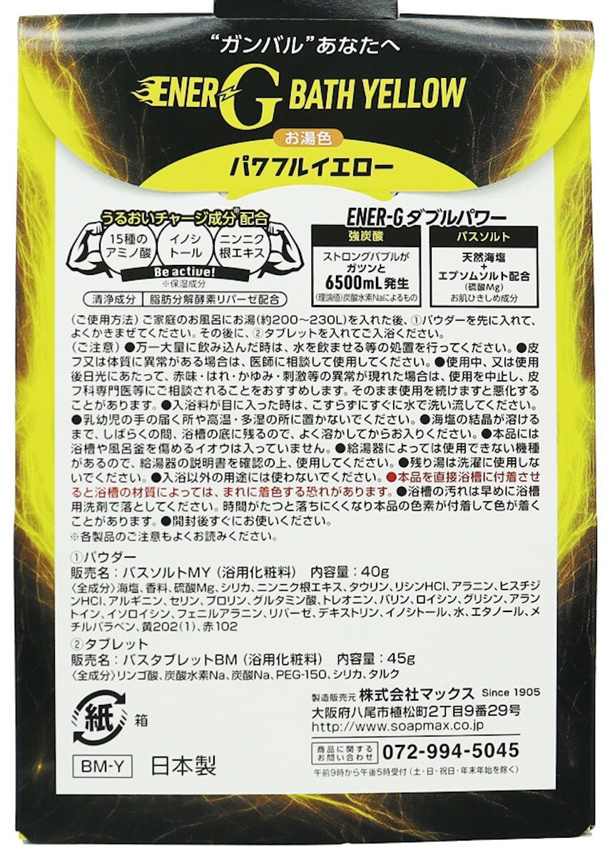 [2種計48個]マックス ENER-G バス イエロー 40g+45g/グリーン 40g+45g | エナジードリンクの世界観をお風呂場で!「強炭酸×バスソルト」まぜて使う入浴料。