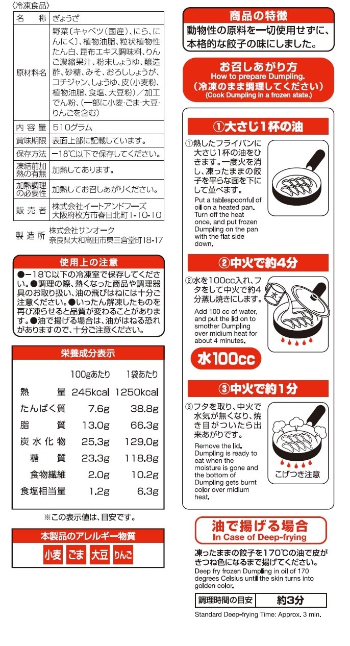 [計600個]イートアンドフーズ 大阪王将 大地の恵み餃子 510g(30個入)×20袋 | 世界中の人が楽しんでもらえる餃子