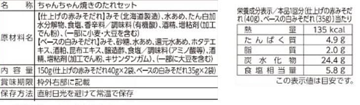 - 北海道ちゃんちゃん焼きの素 150g(40g×2、35g×2)
