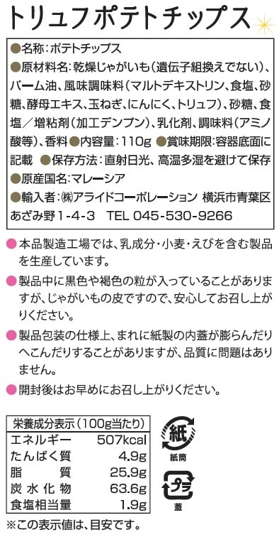 [36個]アライドコーポレーション トリュフポテトチップス 110g | 黒トリュフを使った贅沢な成型ポテトチップス。