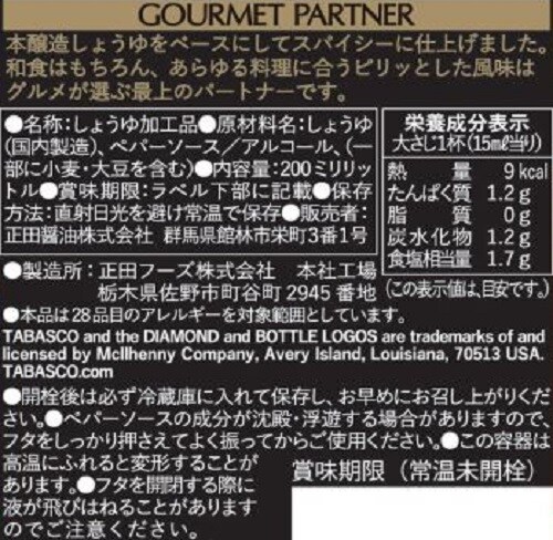 ・味わい豊かなこいくちしょうゆをベースにタバスコⓇブランドペパーソースのスパイシーな風味を効かせました。