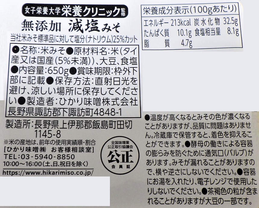 - 女子栄養大学栄養クリニック監修 無添加減塩みそ 650g