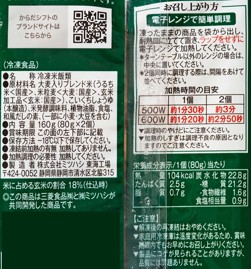 - [冷凍]【16袋】からだシフト 糖質コントロール 玄米入り焼おにぎり 2個入