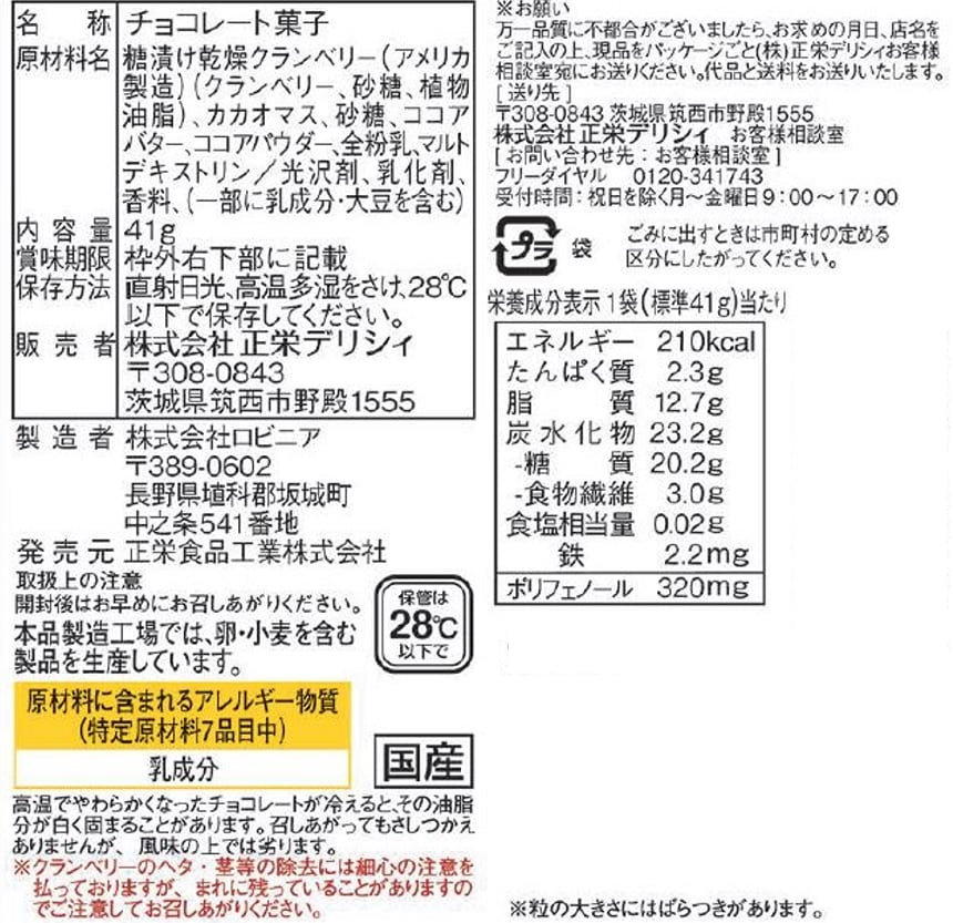 - ・果実Veil カカオ70クランベリーチョコ 41g×20袋(賞味期限:2023/03/31)