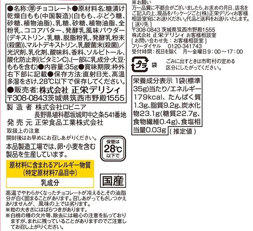 さっぱりとした甘さの白桃を酸味のある爽やかな味わいのヨーグルトチョコで包みました。