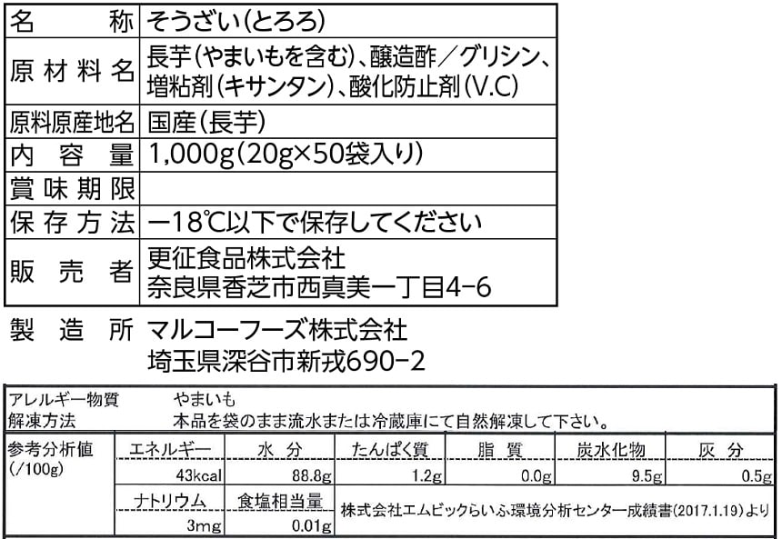 - 冷凍とろろ 1000g(20g×50袋入り)
