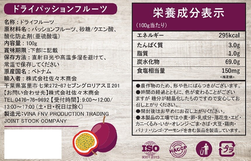 - ドライパッションフルーツ 100g