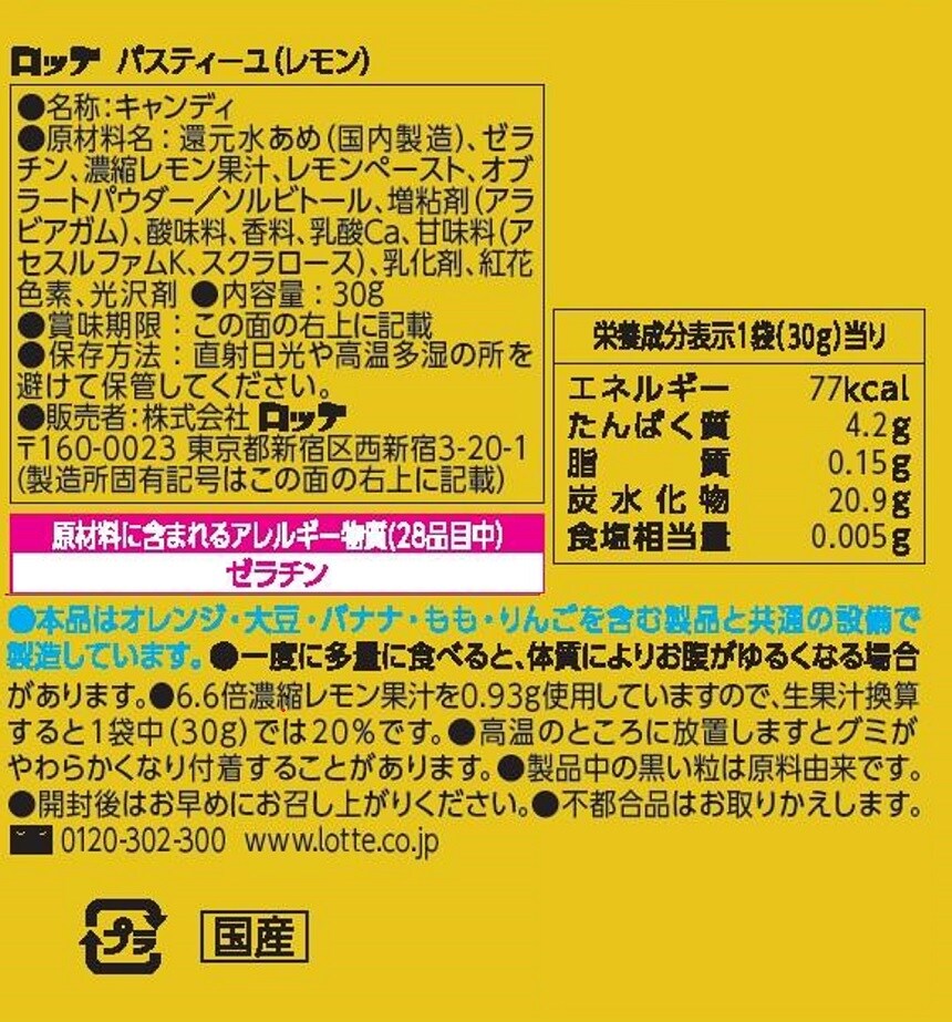 [40袋]ロッテ パスティーユ<レモン> 30g | クセになるハードタイプのレモングミ