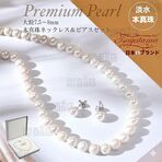 - 本真珠ネックレス&ピアスセット 大粒7.5~8mmゆとり50cm 豪華2点セット