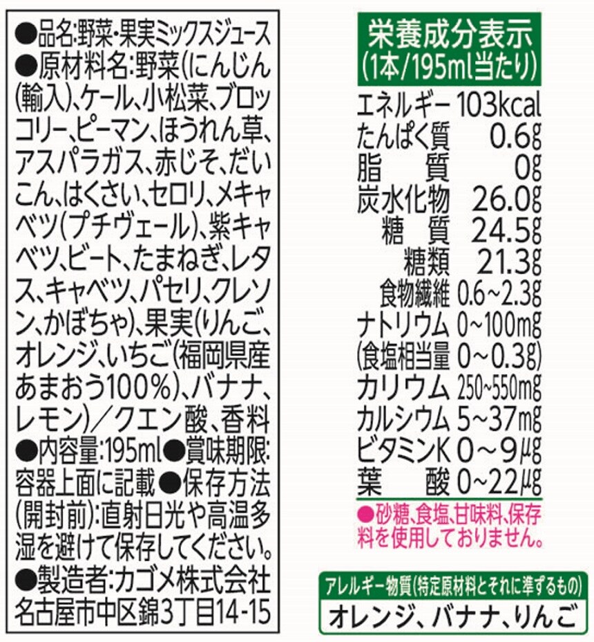 - ・野菜生活100 濃厚果実 博多あまおうミックス 195ml×24本 (賞味期限:製造日より270日)
