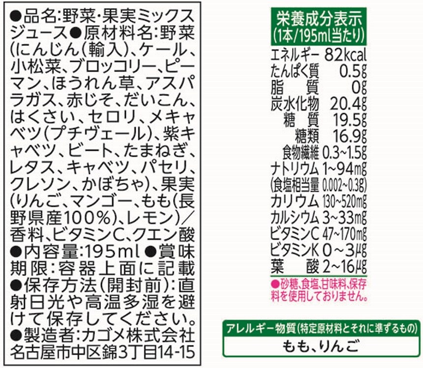 ・野菜生活100 信州白桃ミックス 195ml×24本 (賞味期限:製造日より270日)