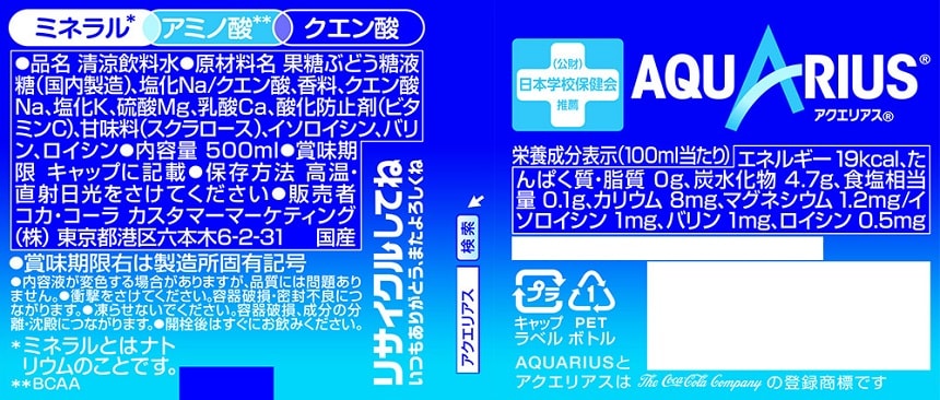- アクエリアス ラベルレス PET 500ml