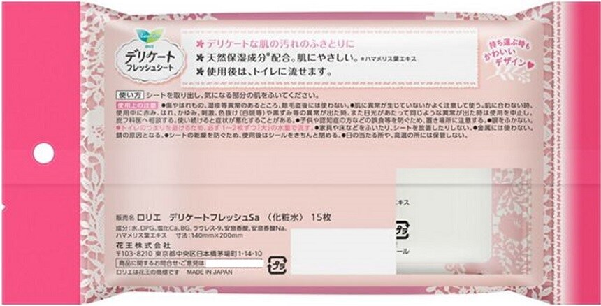 [12個]花王 ロリエ デリケートフレッシュシート 15枚入 | 「においの元になる汚れ」や「ムレ感」もすっきり!デリケートな肌もやさしくふきとれるフレッシュシート
