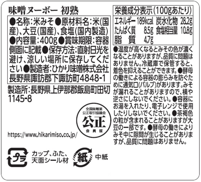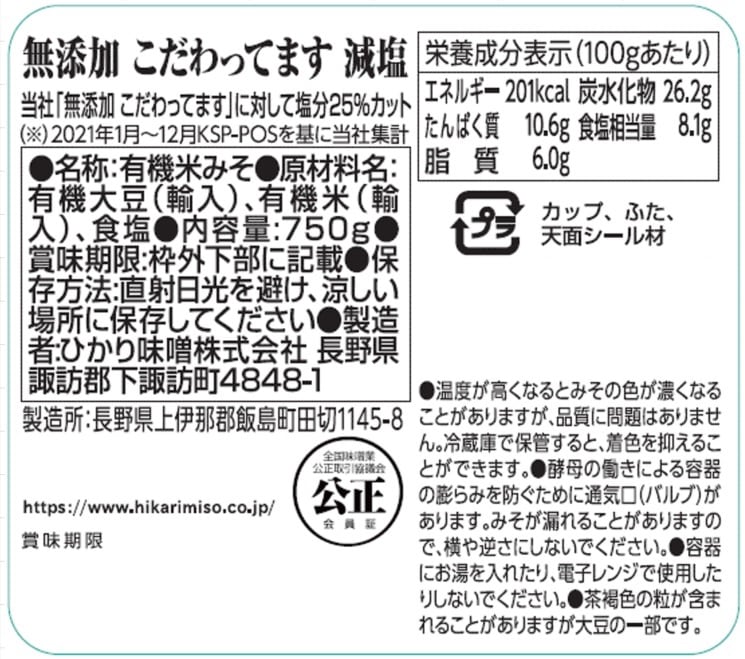 - こだわってます減塩 750g / 味噌ヌーボー初熟 400g
