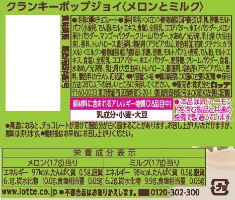 [60袋]ロッテ クランキーポップジョイ<メロンとミルク> 34g | メロンとミルク、交互に食べればとまらぬおいしさ♪