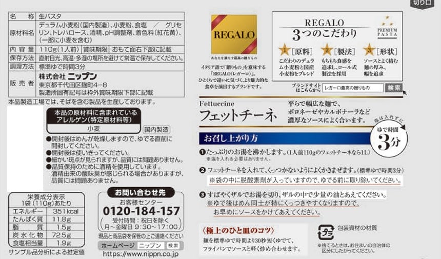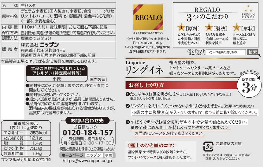- REGALO 生パスタ フェットチーネ 110g / リングイネ 110g