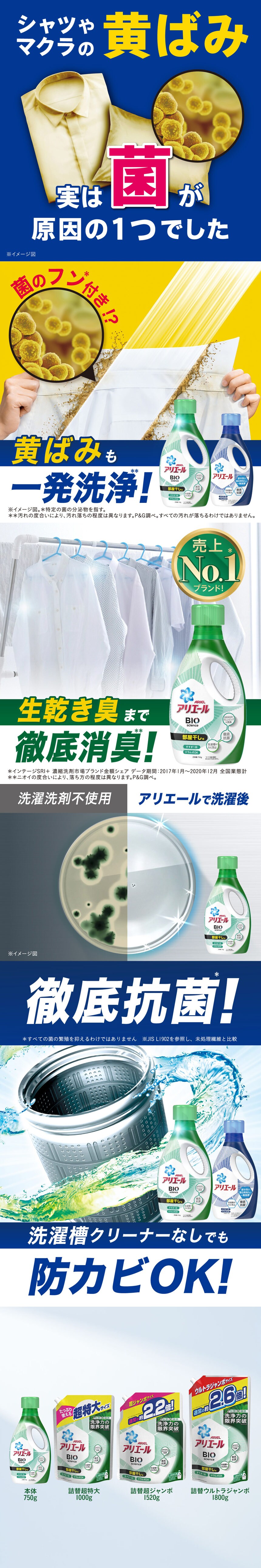 ●徹底抗菌(※3)のアリエールバイオサイエンス。