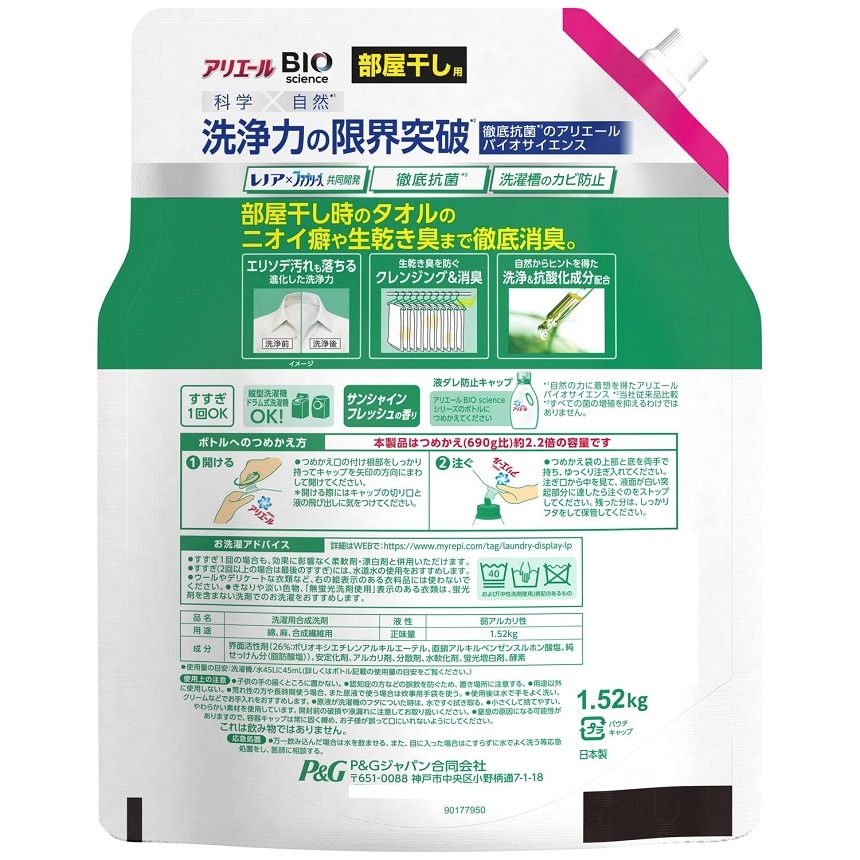 - アリエール 洗濯洗剤 液体 バイオサイエンスジェル 部屋干し用 つめかえ 超ジャンボ 1520g