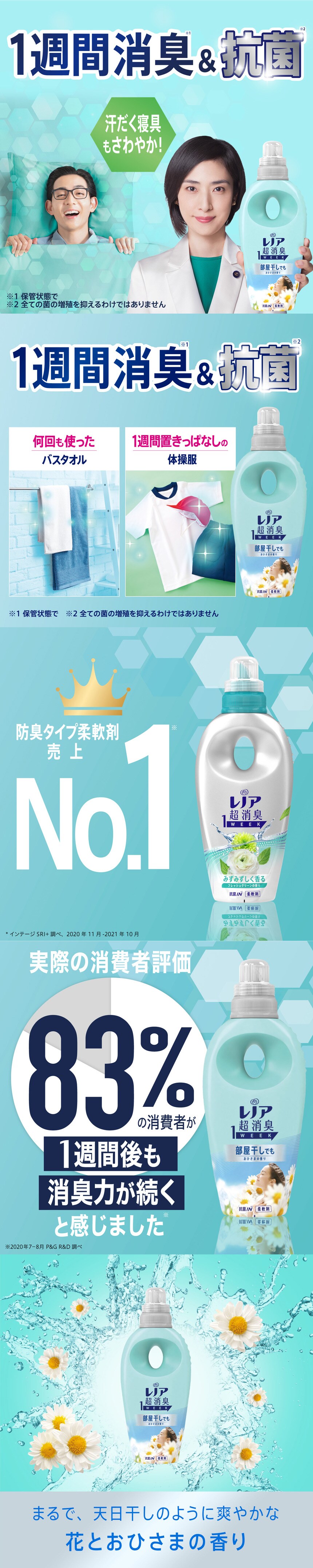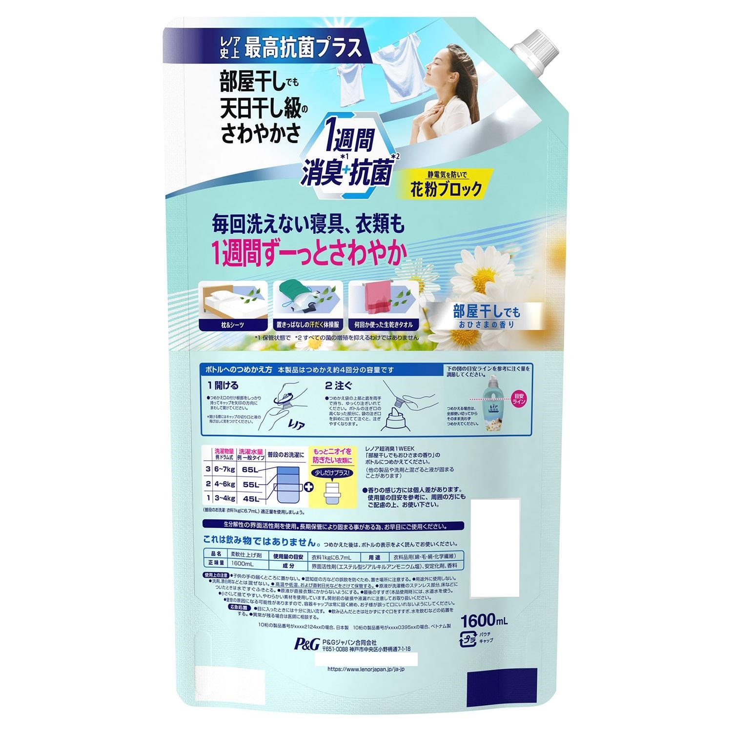 - レノア 超消臭1week 柔軟剤 部屋干し用 花とおひさまの香り つめかえ用 超特大 1600ml