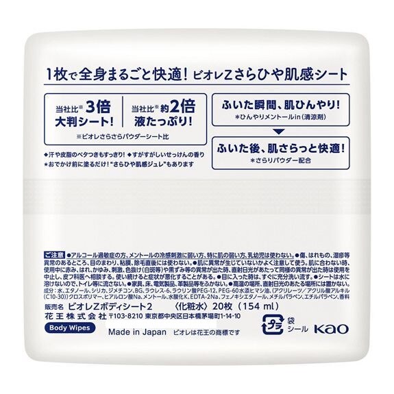 ビオレZ さらひや肌感シート すがすがしいせっけんの香り 20枚入