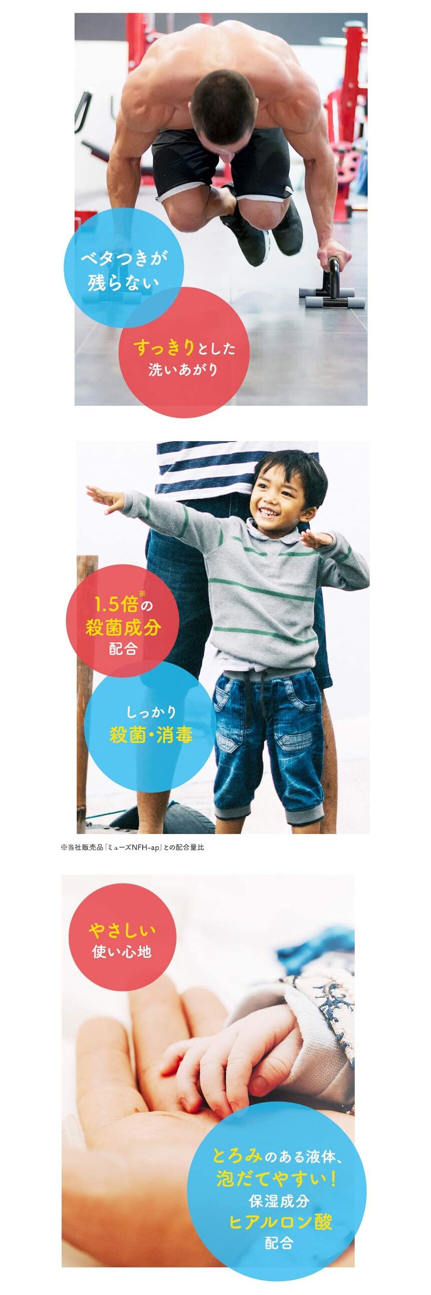 ●1987年の発売以来、愛され続けているオレンジ色の液体石鹸・ミューズ。幅広いバイ菌をしっかり殺菌・消毒し、手肌を清潔に保ちます。さらにかさつきを防ぐ保湿成分も配合。