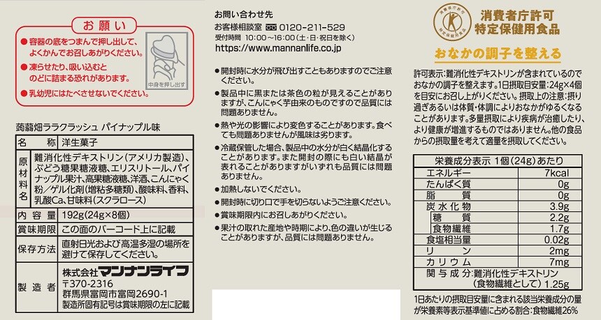 【【特定保健用食品】蒟蒻畑ララクラッシュ パイナップル味】なし