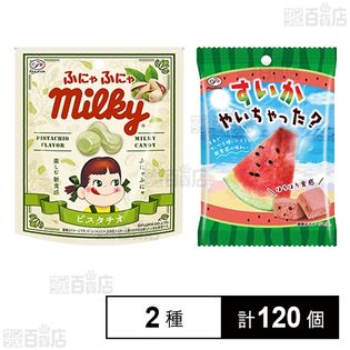 【日替数量限定】<先行チケット利用NG>[2種計120個]不二家 すすいかやいちゃった? 38g/ふにゃふにゃミルキー(ピスタチオ) 36g