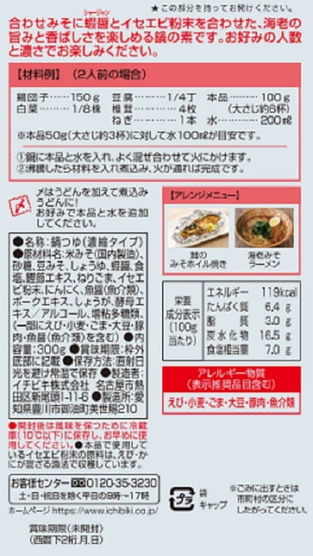 [20個]イチビキ 海老みそ鍋の素 300g | イセエビパウダー使用、好きな量で使えるスパウトタイプ