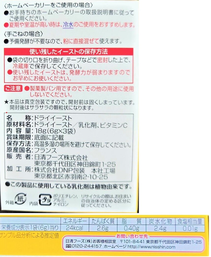 - 日清 スーパーカメリヤ ドライイースト 使いきり用 18g(6g×3袋)