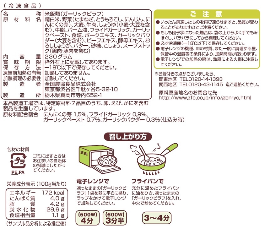 [計24食]全国農協食品 ガーリックピラフ 230g | にんにくの芽とフライドガーリックが入った「ガーリック好き」のためのスタミナ系ピラフです。
