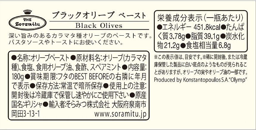 [24本]そらみつ ブラックオリーブ ペースト 212瓶 180g | パスタソース・サラダソース・トーストやオードブル等使い方色々「ブラックオリーブペースト」