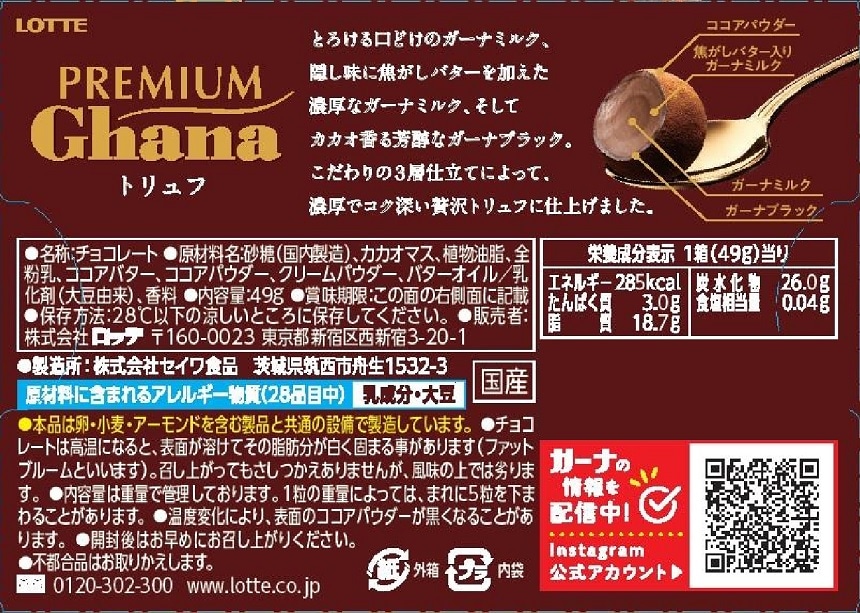 [40個]ロッテ プレミアムガーナトリュフ 49g | コクを楽しむ贅沢3層仕立ての大粒トリュフ