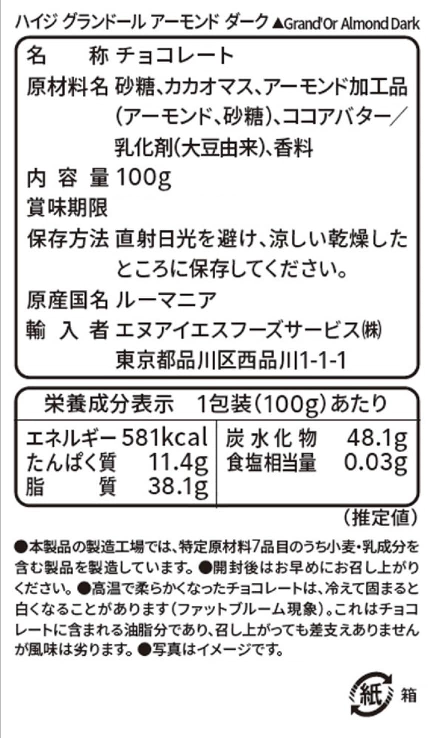 ・ハイジ グランドール アーモンド ダーク 100g×5個(賞味期限:2023/09/12)