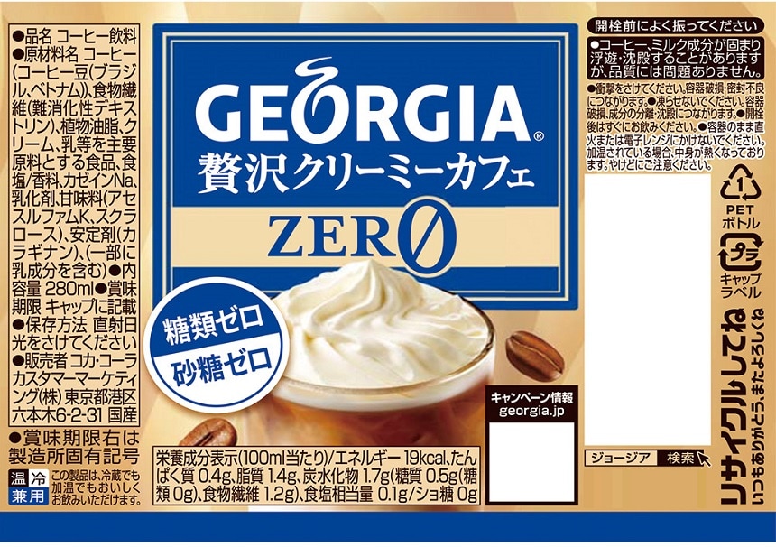 - ジョージア 贅沢クリーミーカフェ ゼロ 温冷兼用 PET 280ml