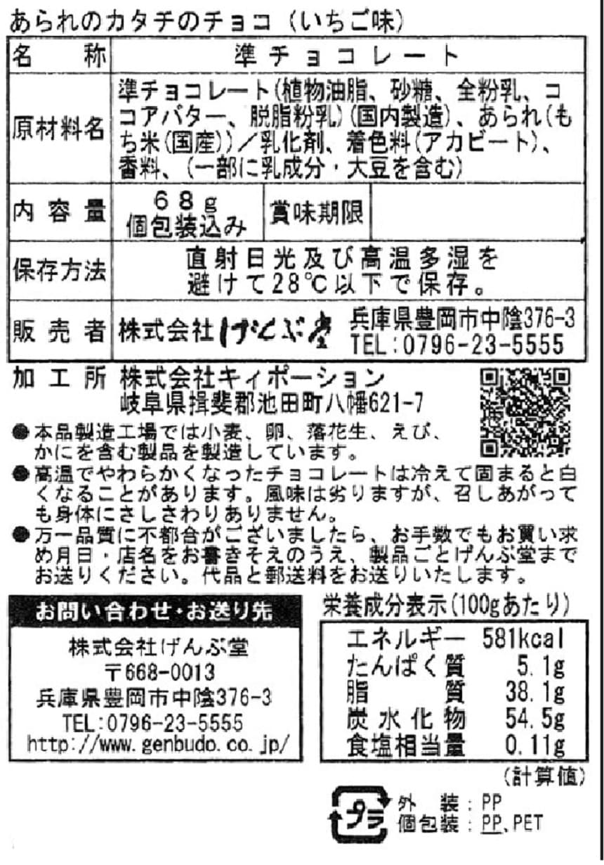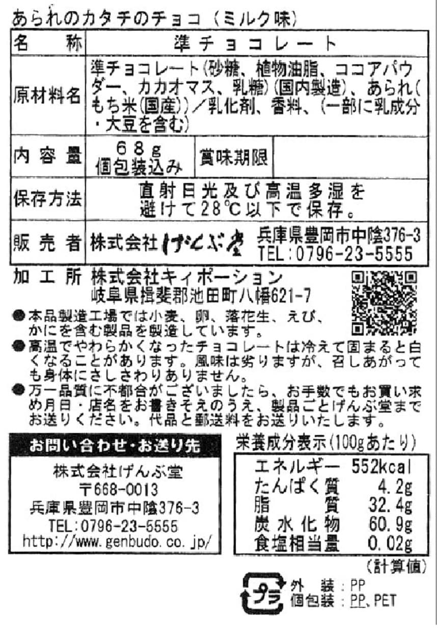 - ・あられのカタチのチョコ(ミルク味) 68g×4袋(賞味期限:2023/08/07)