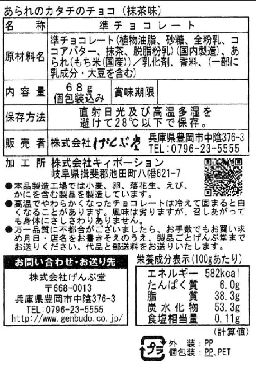 ・あられのカタチのチョコ(抹茶味) 68g×4袋(賞味期限:2023/08/07)