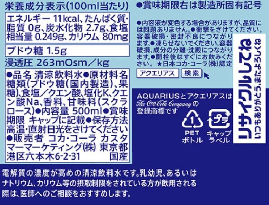 [48本]コカ・コーラボトラーズジャパン アクエリアス経口補水液 PET 500ml | すっきり柑橘味で、飲みやすいおいしさの経口補水液