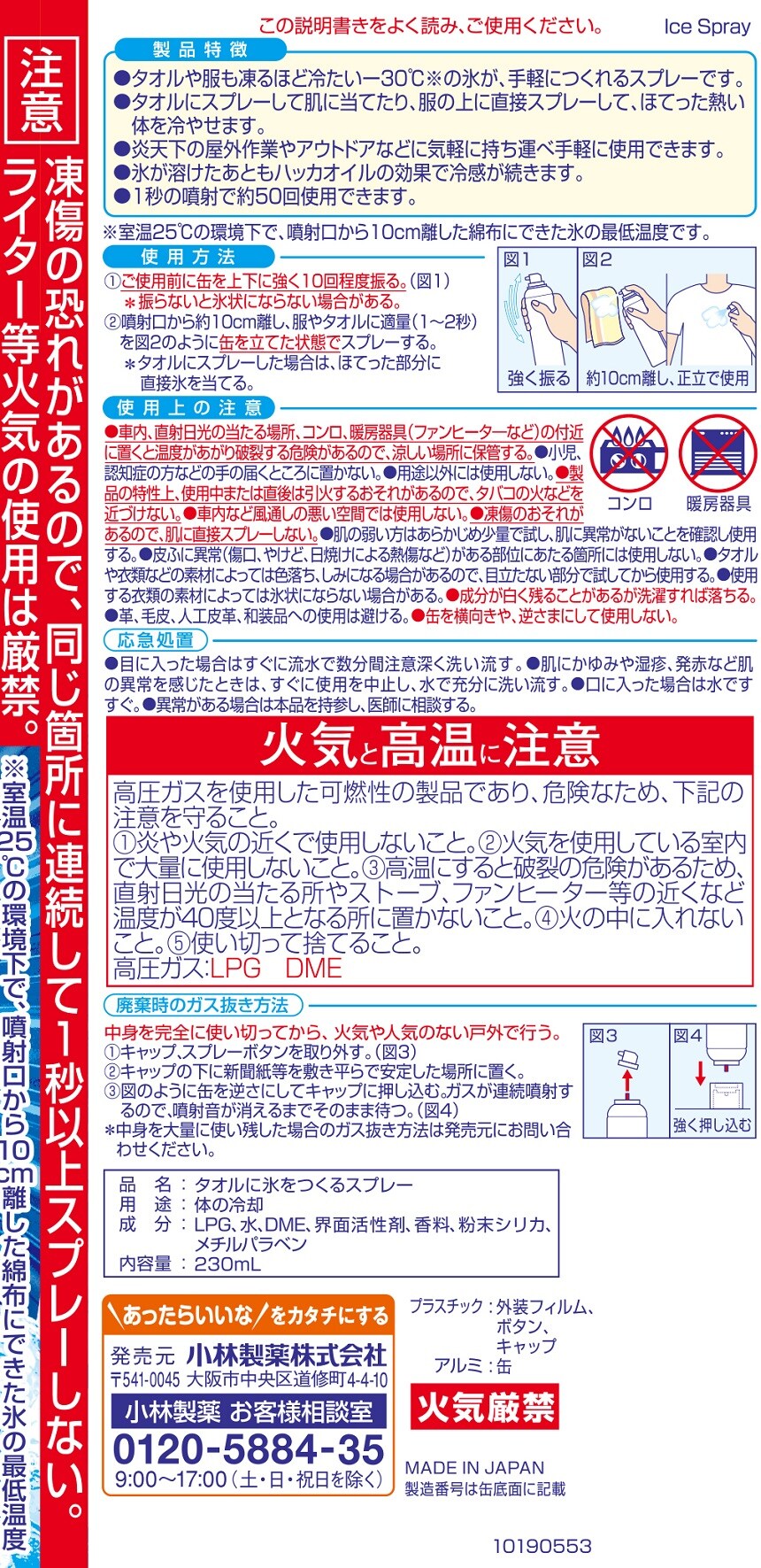 [18個]小林製薬 熱中対策 タオルに氷をつくるスプレー 230mL | いつでも手軽に-30℃※の氷で冷やす ※室温25℃の環境下で、噴射口から10cm離した綿布にできた氷の最低温度